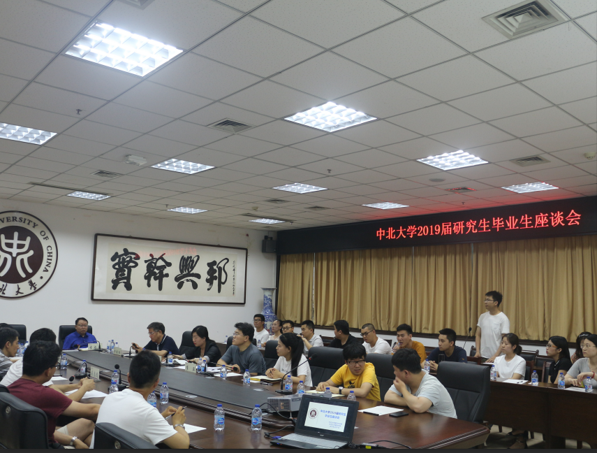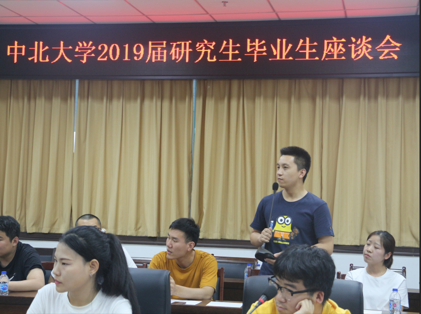 接着,出席本次座谈会的领导向毕业生们提出寄语与期望。副校长赵贵哲希望大家心存感恩,怀抱为伟大祖国做贡献的理想,珍惜当下,努力奋斗,实现自我理想价值,回报党的教育,中北大学随时欢迎同学们常回母校看看。并祝贺大家顺利毕业,祝福大家健康成长。校党委副书记薛智指出,进入新时代,当代研究生要强化主体自觉,承担好新时代所赋予的使命,不断增强学术自信,时刻保持强健的体魄和良好的精神状态,做堪当大任的新时代青年。校党委书记李忠人,对同学们圆满完成学业,迈入人生的新阶段表示祝贺。感谢各位毕业生代表开诚布公、积极中肯的发言和建议。表示学校将认真整改大家提出的问题,总结经验,做好未来的改进工作。希望同学们走出校门后继续发扬太行精神,奉行致知于行的校训,努力践行社会主义核心价值观。座谈会在师生融洽的氛围中圆满结束。最后由何华书记总结致辞,希望大家投身新时代,将中北人的精神、中北的品牌带到各自的工作岗位,砥砺奋进,创新有为,实现个人梦,共筑中国梦,祝大家一路顺利,前程似锦!