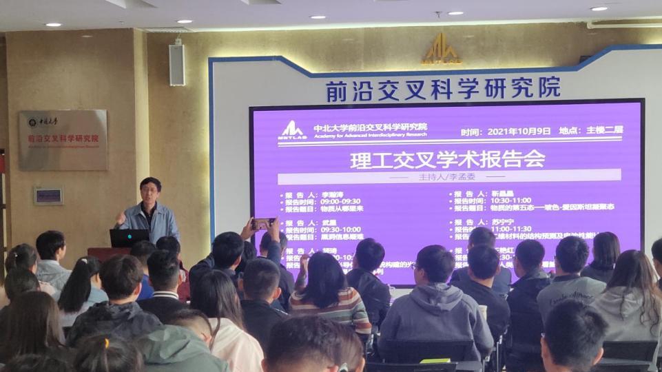 10月9日上午,中北大学前沿交叉科学研究院举办了理工交叉学术报告会。报告会由研究院院长李孟委教授主持,参加会议的有前沿院骨干研究人员及100多名研究生。本次报告会作为省教改项目"研究生六个一"培养模式的内容之一,研究生院院长胡双启教授出席了会议。