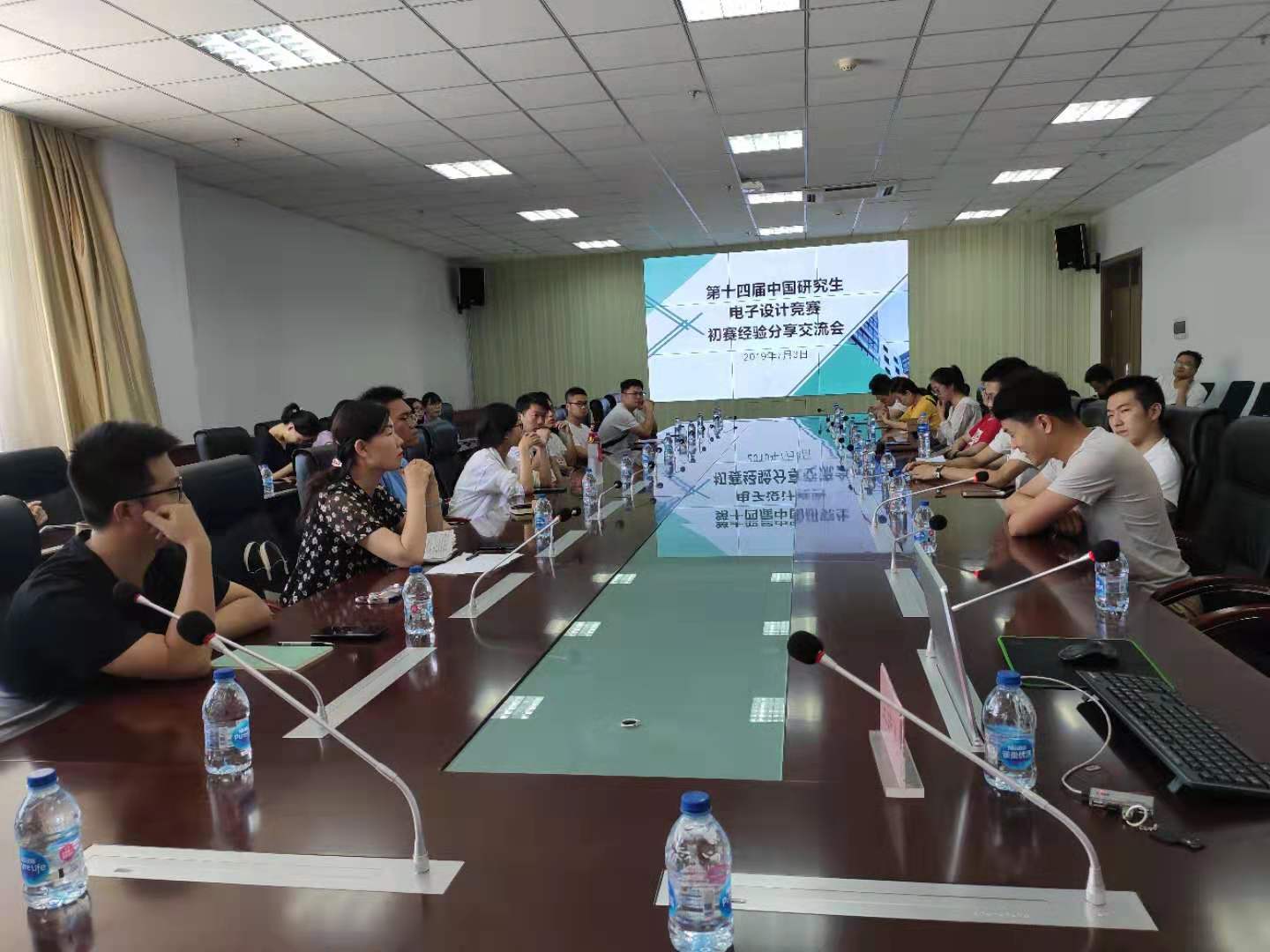 在第十四届中国研究生电子设计竞赛华北赛区初赛中,我校代表队表现优异,共获得9项一等奖。为帮助我校代表队在分赛区现场赛中取得好成绩,提升我校进入全国总决赛的队数,2019年7月3日上午,我校研电赛经验分享交流会在瑾瑜国际会议中心第五会议室举办。研究生党委书记何华、研究生院教育管理科殷勍老师、信息与通信工程学院研究生辅导员王建萍老师、3位往届获奖杰出代表廉宇琦、薛冰、燕慧超以及本次所有获初赛一等奖参赛成员出席活动。