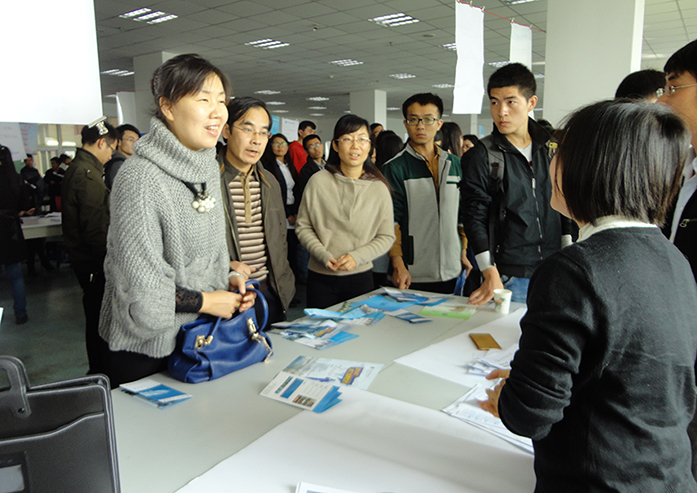 研究生院党总支书记何华老师在现场与用人单位进行深入交流,了解用人单位的需求情况,并与多名学生亲切交谈,掌握了毕业生应聘的有关情况。