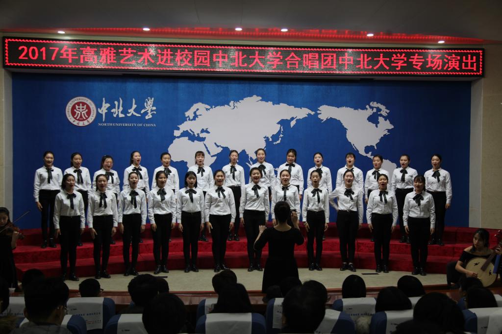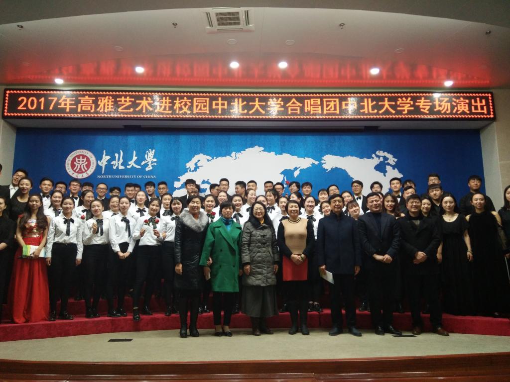 12月11日晚,由山西省教育厅主办,研究生院和艺术学院共同承办的2017高雅艺术进校园之中北大学合唱团“从草原走来”专场音乐会在瑾瑜国际会议中心举办。校纪委书记王瑞芬、河南师范大学研究生院专业学位办公室主任刘蕊民、校研究生院院长胡双启、研究生党委书记何华、国资管理处处长李仰军及艺术学院领导和老师到场观看了音乐会。