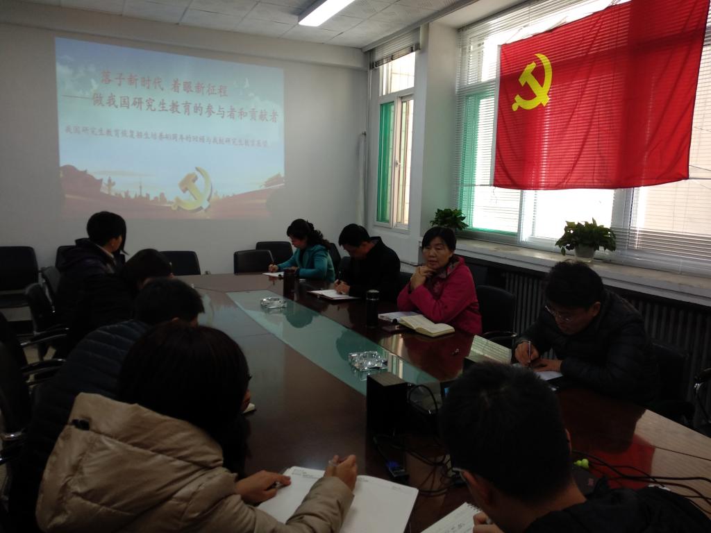 10月25日下午15:00,研究生院组织全体党员召开了以《落子新时代、着眼新征程——做我国研究生教育的参与者和贡献者》为主题的党日活动。