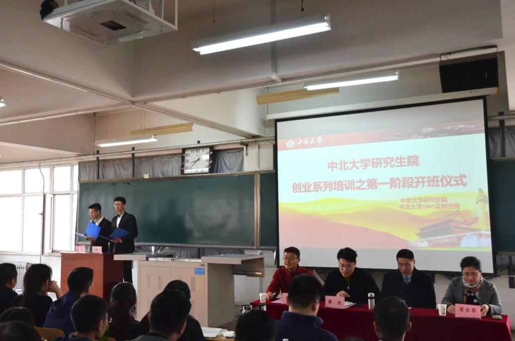 2018年11月3日上午8点30分,由中北大学研究生院主办、中北1941众创空间承办的中北大学研究生院创业系列培训之第一阶段开班仪式于14502H教室成功举办。中北大学研究生党委副书记兼副院长崔亚、中北1941众创空间负责人严绍进、研究生院教育管理科老师任伟吉以及中北1941众创空间项目总监梁会琴担任此次嘉宾,560余名学员参加本次活动。