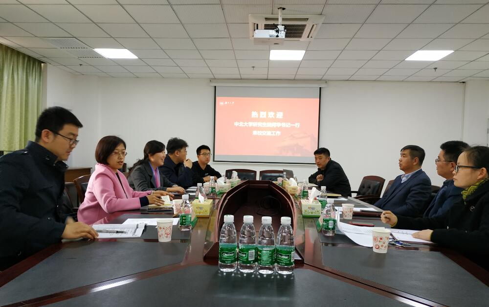2019年3月15日下午,调研组来到中南大学,中南大学学生工作部副部长姚勇、研究生院培养办科长王月平,学生工作部管理科科长刘勇等相关部门负责人热情接待。姚勇副部长代表中南大学对何华书记的到来表示欢迎,表示希望双方加强合作,共同进步,他从研究生教育管理工作、师资队伍建设、党建机制等方面介绍了中南大学的基本情况。何华感谢中南大学的热情接待,她对中南大学在党建管理、资金资源等的推行方面取得的先进经验表示钦佩,并就相关内容的情况进行了详细询问,得到了一一解答,她还希望两校能加强联系,经常传金送宝。随后,调研组其他教师围绕调研内容与中南大学相关部门负责人进行了深入交流探讨。