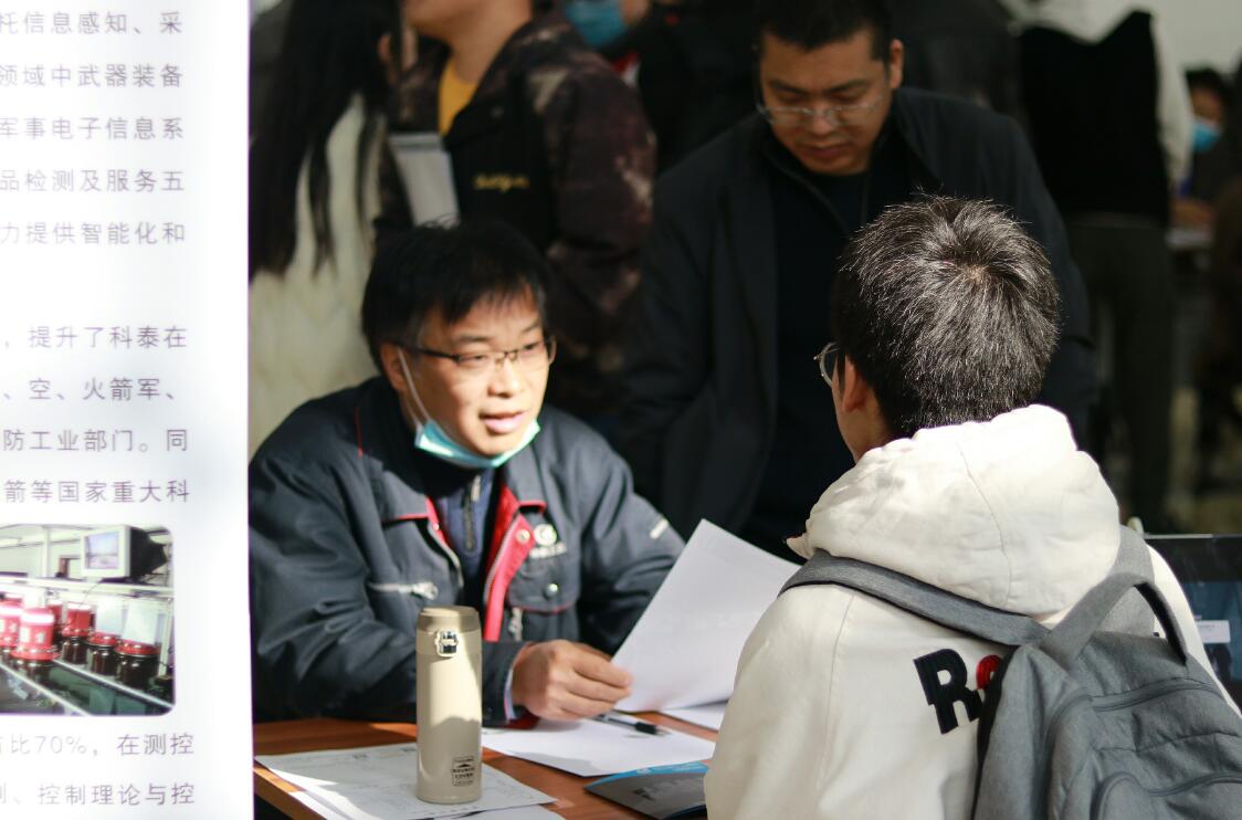 本次双选会汇集了来自北京、天津、山西、陕西、四川、河北、河南、湖北、重庆、上海等全国多地的72家用人单位,其中包括航天三院三部、四川航天电子设备研究所、中国船舶重工集团七一〇探究所、中国航天科工集团二院二十三所、中国人民解放军第6904工厂等,招聘范围涵盖兵器、航天、机械、教育等领域,共提供工作岗位1496个。双选会上多家用人单位的展位前排满了投递简历和咨询的毕业生。学生纷纷与企业进行交流协商,部分达成意向的学生与企业在现场就签订了就业协议,据数据统计在双选会现场签约的有38人,并且多家用人单位在会后对毕业生进行专场宣讲和面试。