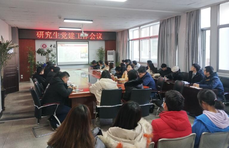 12月23日下午,研究生党委组织研究生党支部召开研究生党建工作会议,研究生党委书记何华、研究生党委副书记兼副院长崔亚、研究生院教育管理科任伟吉和研究生36个党支部负责人参加,会议由研究生党委书记何华主持。