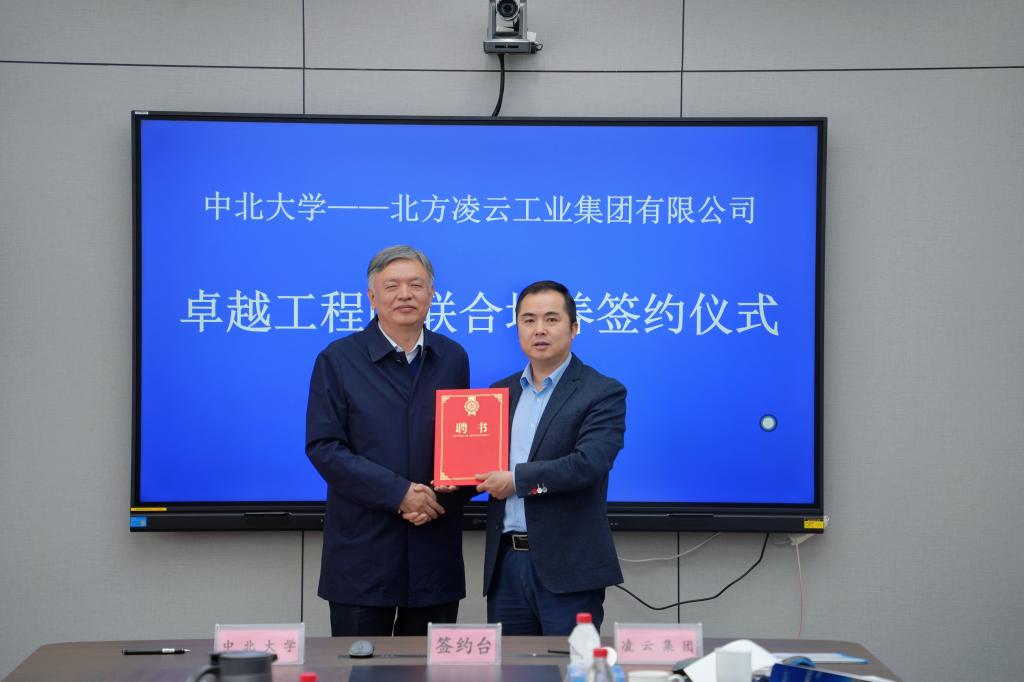 签约仪式上,在与会人员的见证下,双方法定授权代表人现场签订了卓越工程师联合培养协议,中北大学赵贵哲副校长为北方凌云工业集团郑英军董事颁发了山西省卓越工程师学院(中北大学)第一届理事会理事单位代表聘书。